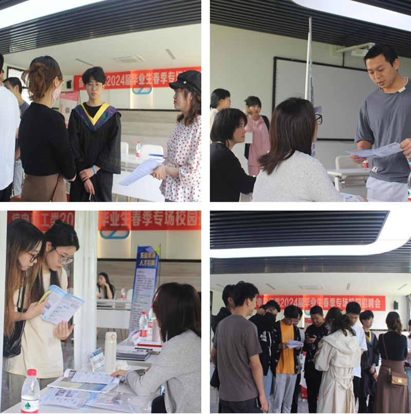 5月9日下午,信电建工类2024届毕业生春季专场校园招聘会在13幢教学楼一楼香农厅举行。