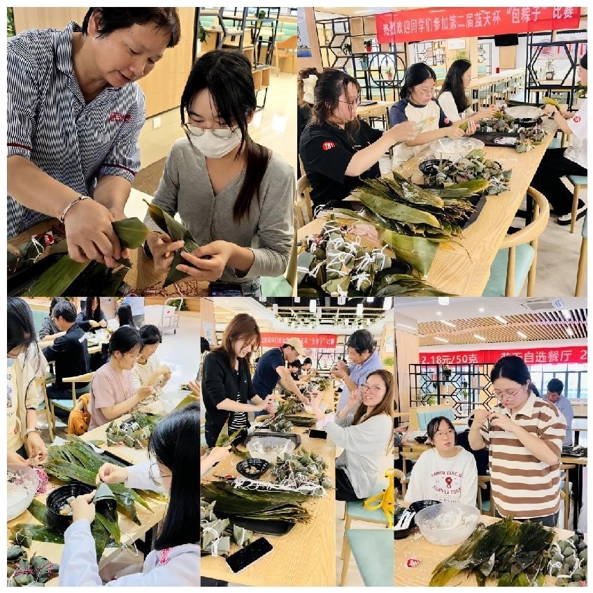 “粽叶飘香迎佳节,浓情端午共安康。”6月6日下午,学院资产经营公司餐饮服务中心诚邀师生代表参加学院“端午情深·‘粽’享时光”包粽子活动,此次活动在北区蓝天美食广场举办。