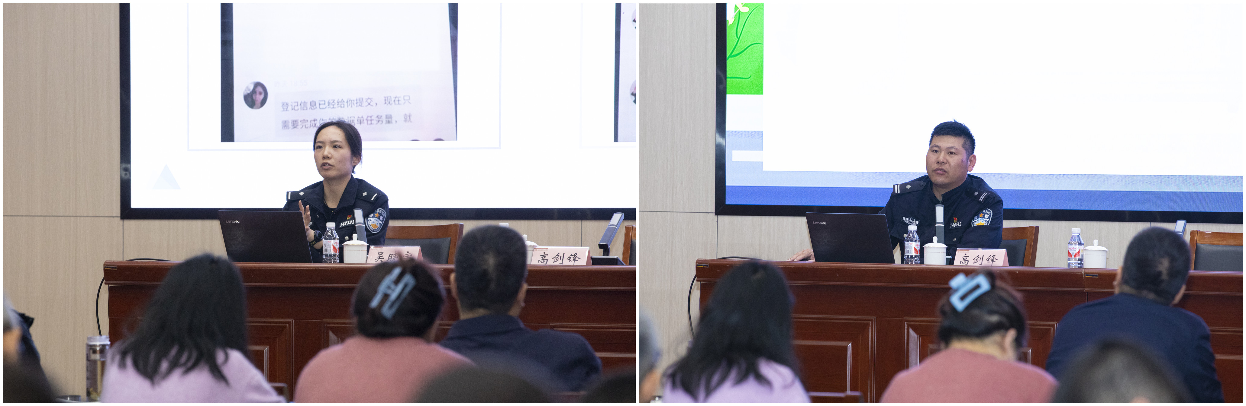 第一阶段主题讲座中,镜湖交警大队东浦中队长高建锋从交通事故现状、常见交通违法、交通事故预防、事故发生后的现场处置、常见事故责任认定等方面进行详细介绍,以通俗易懂的语言为大家讲解交通安全注意事项,特别是酒驾醉驾等交通违法行为的危害性。吴晓宇警官从电信诈骗形式背景、易被骗手段及防范要点等方面声情并茂地讲解诈骗手法及危害性,积极传授防骗技巧和方法,让大家深刻认识到诈骗的严重危害性和防范的重要性。