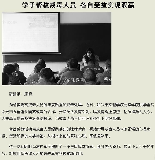 《浙江法制报》:元培学子帮教戒毒人员 各自受益实现双赢