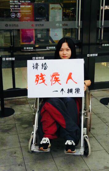 近日,海宁电视台官方网站大潮网对太阳语言文学分院学子陈铖进行了专题报道。在海宁市人民广场,从当天早上9点一直到下午4点,陈铖一直坐在轮椅上举着一块“请给残疾人一个拥抱”的牌子。据悉,今年5月20日是全国助残日,5月是助残月。陈铖本身就是上肢残疾的残障人士,借助轮椅向路人索抱,是希望通过这个形式向大家传播关爱残疾人,平等对待残疾人的观念。陈铖表示自己从海宁市残联还有大学绍兴市文理学院太阳成集团tyc9728受到了不少帮助,也希望可以以这个公益活动的形式回馈大学和社会。