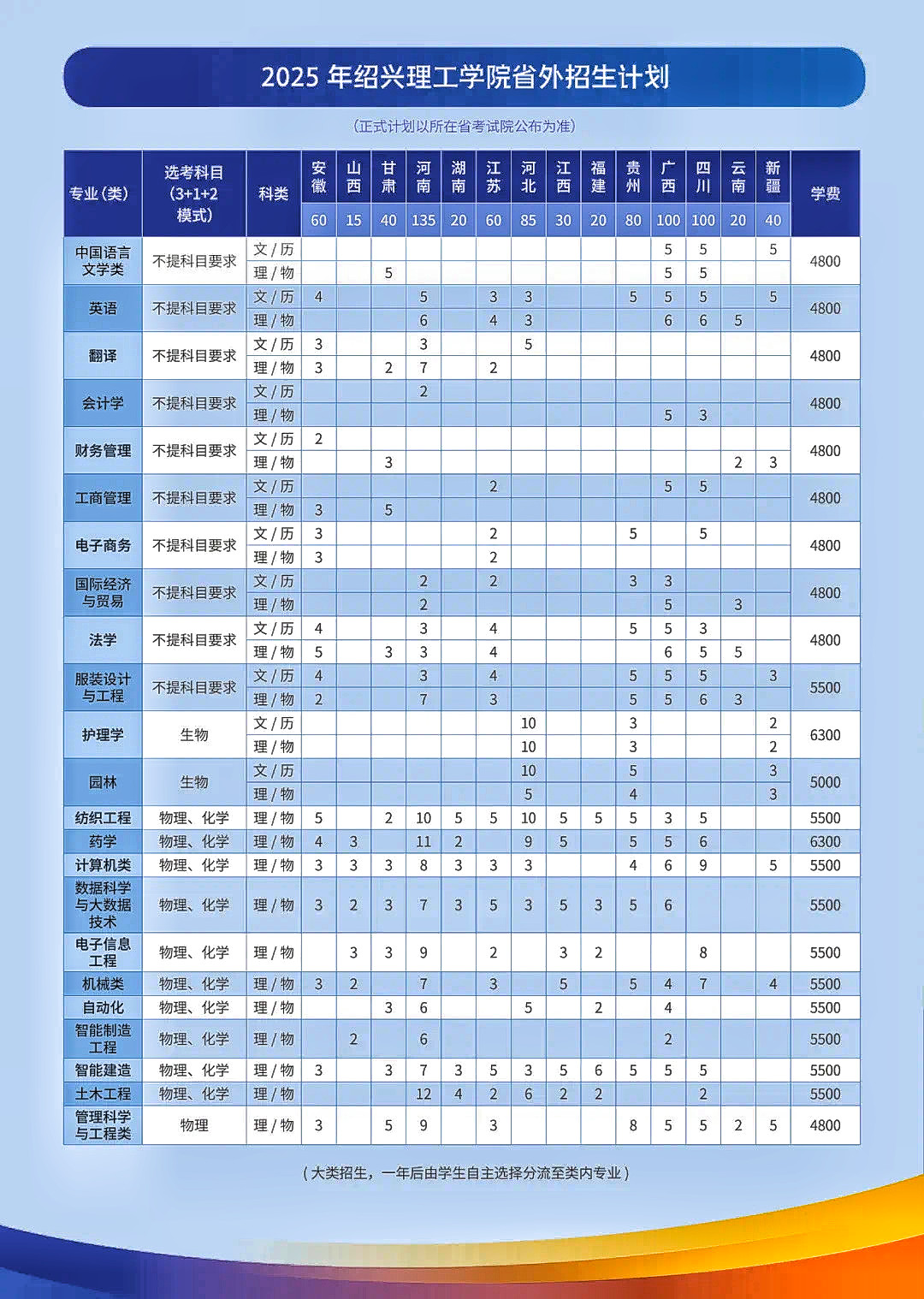 我校2025年面向全国15个省(市、自治区)招生计划总数为1930人,其中浙江省招生计划1125人,较去年增加135人,包括普通类915人,艺术类105人,中职单独考试类105人。省外招生计划805人,较去年增加165人。