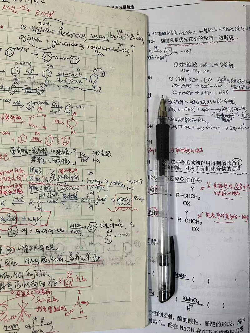 药学以药剂学和药物化学为主,药理学和药物分析学为辅,综合性较高,难度也很大。有机化学是专业课的考试科目之一,也是她认为需要花费大量时间与精力去攻克的。翻开其中一篇《抗胆碱药》,从阿托品的七大作用到六大用途相关禁忌,在书上的留白区域写下了密密麻麻的笔记。“考研期间压力很大,每天超过10个小时的学习经常打乱我的复习计划,所以我把时间精细划分到每一项日常里,保证复习的高效性。”直到考试前一夜,她依然完成了排得满满当当的复习计划。