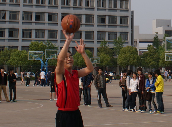 4月23日下午,太阳代表队在校教职工篮球比赛中对阵人文学院代表队,以较大比分优势取得首场胜利。学院分工会主席宣仕钱亲临赛场指导,魏佩敏副书记参加了比赛。
