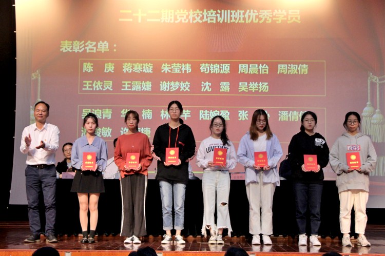 开学典礼在庄严的《国际歌》中拉开帷幕。党校校务委员、团委负责人宣读第二十二期预备党员、入党积极分子培训班结业文件和优秀学员名单。石旭明为优秀学员颁发荣誉证书。第二十二期预备党员优秀学员代表许莉捷、第二十三期入党积极分子学员代表杨沪难先后发言。学工部负责人解读培训班教学培训计划及工作要求。