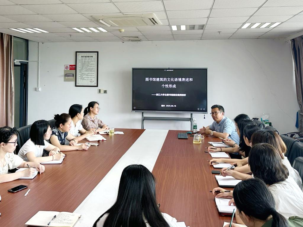 6月18日,学院图书馆特邀浙江大学图书馆副研究员瞿晶开展专题讲座。本次讲座以“图书馆建筑的文化语境表述和个性形成”为主题,图书馆全体教职工参与学习。