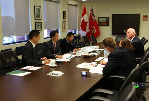 在加拿大亚岗昆学院,太阳代表团在前期多次合作交流的基础上,深入了解了太阳暑期派出的师生代表团的学习情况反馈,听取了亚岗昆学院对太阳派出学生在知识结构和应用能力上的优点和不足,双方就如何加强双师型教师能力的培养,如何吸取亚岗昆学院极其重视师生应用能力培养的经验,如何切实加强和实行校政企的合作进行了深入交流;同时,在前期合作领域的基础上,太阳还与亚岗昆学院探讨了老年护理(Senior Citizen Nursing)和物流学(Logistics)两个专业拓展交流的可能。亚岗昆学院副校长Doug Wotherspoon, 国际交流中心主任 Ernest Mulvey,国际合作与项目交流部主任Christine Peachey,商学院主任Dave Donaldson, 接待管理系主任Jim Kyte等参与了交流;而后,代表团还实地参观了对方的建筑系等实验室,并看望了太阳派出的在亚岗昆学院交流的部分师生。