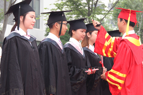 “我感慨万千,充满欣喜,充满牵挂,也充满祝福。”毕业之际,叶院长对同学们提出了三点希望:一要立足学习,投身实践。大学毕业,人生并没有毕业;学业结束,学习并没有结束。希望同学们牢记“修德求真、传承创新”的院训,永葆学习热情,在实践中探索新的知识,在学习中获取前进的力量;二要坚持梦想,勇担重任。未来的日子里,要带头干事创业,引领社会潮流,成就行业标杆,用自己的实际行动托起“中国梦”,实现“中国梦”;三要坚持感恩,幸福生活。无论何时何地,都要用心去感受生活的美好、平凡中的美丽;用情去感恩父母长辈的赠予、良师益友的陪伴,用理智去感谢挫折和失败对人生的洗礼。只有懂得感恩,才能懂得付出的美好,感受回报的幸福。叶院长还亲自为2014届毕业生代表拨穗,并与他们合影留念。