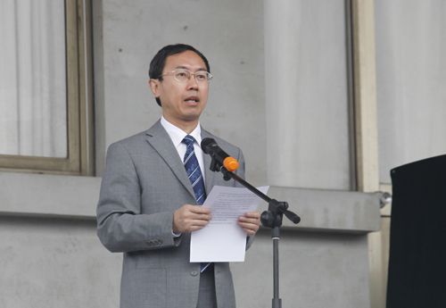 庄严的奏国歌、升国旗仪式之后,校长叶飞帆致开幕词。他代表学校和运动会组委会对本届运动会的开幕致以热烈祝贺,对精心筹备、组织本届运动会的全体工作人员和教练员表示诚挚感谢,向全体裁判员和运动员致以亲切问候。他强调体育不仅可以促进体魄健康,也有利于大学生人格的培养。校运会是学校优秀人格培养的有效载体,是展开群众性体育活动,增强师生体质的有效抓手,是对学校教育成果和师生精神风貌的集中展示。他期待大家能够共同努力,努力将本届运动会办成一届安全、公平、文明、高水平的运动会,并希望参赛运动员发挥奥林匹克精神,顽强拼搏、公平竞赛,赛出好成绩,赛出新风尚,取得运动成绩和精神文明的双丰收,为我校体育事业发展做出贡献。