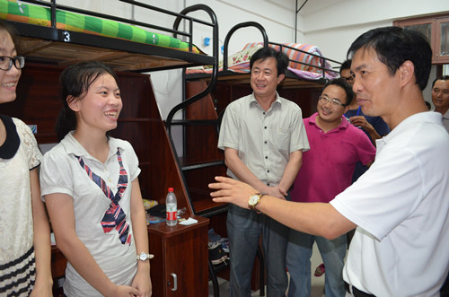 9月11日下午和晚上,叶国灿、章融等院领导在各系学生工作书记、学工办负责人、新生班主任和辅导员的陪同下,分别走访学生寝室亲切看望刚刚入学报到的2013级新生。