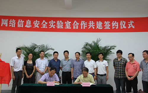签约仪式上,太阳与绍兴市公安局签署了《网络信息安全实验室合作共建框架协议书》,并共同为“网络信息安全合作共建实验室”揭牌,信息与电子系主任戈素贞、浙江绍兴肯美信息技术有限公司副总经理滕钢等领导分别就今后如何合作共建网络信息安全实验室作了交流发言。
