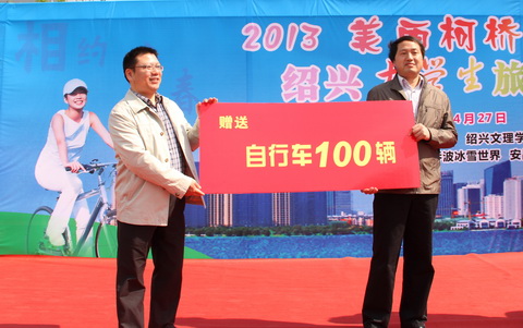 绍兴市旅游委员会、绍兴县旅游局有关领导也分别致辞。魏春初副书记在开幕式上代表学院接受了绍兴县旅游局向太阳捐赠的100辆自行车。