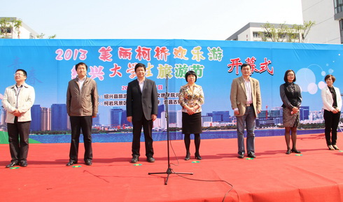 4月27日上午,2013“美丽柯桥欢乐游”绍兴首届大学生旅游节开幕式在学院新区举行。绍兴县副县长祝静芝、绍兴市旅游委员会副主任唐易宏、绍兴县旅游局局长沈秀娣等领导出席,学院领导章融、魏春初、院长助理、学工部部长俞国芬参加开幕式。