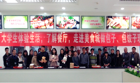 在饮食服务中心朱老师的带领下,学生代表首先参观了食堂二楼厨房。厨房间、粗细加工间、面点间、冷库间等平时无法进入的工作室一一展现在大家眼前。据朱老师介绍,后勤公司饮食服务中心始终秉持“常组织、常整顿、常清洁、常规范、常自律”的“5S”管理法,每个部门严格按照“5S”开展日常工作,各部门之间积极配合,以师生吃得放心吃得满意为目标,并为之不断努力。随后,朱老师带领大家以食堂常见菜肴西红柿炒鸡蛋、花菜炒肉丝为例,进行了一次现场成本核算活动。从原材料成本合计到收入合计,同学们亲自核算亲眼见证,同时也对食堂制定饭菜价格有一定了解。最后,大家在群贤楼三楼餐厅进行了别开生面的包饺子、炒菜大比拼。比赛中,他们自由组合分工明确,在老师和餐厅工作人员的帮助下一道道色香味俱佳的菜肴、一个个晶莹剔透的蒸饺很快出炉,评委老师和现场观众纷纷为他们精湛的厨艺拍手叫好。