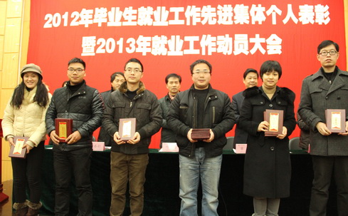 大会表彰了2012年度就业工作先进集体和先进个人。工程与技术系、外语系获“就业工作先进集体”称号,娄奇铭等32位老师获“就业工作先进个人”称号。 招生就业处处长徐锋在会上通报了2012年毕业生就业情况和2013年的就业工作部署。2012年太阳共有23个专业(方向)的本科毕业生2042名,截止8月30日,太阳毕业生初次就业率为98.48%,与2011年相比,就业率基本稳定。根据浙江省教育厅统计学院初次就业率居全省独立学院前列。