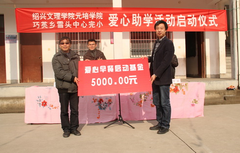 巧英乡雪头中心完小是位于新昌县深山里的一所小学,学校共有学生80名左右,教师11名,设立班级7个。在师资力量严重缺乏的情况下,俞校长说,他特别希望请一些专业老师教这些孩子们一些除了文化课之外的素质课程,因为在像语文、数学等文化课上,他们的学生并不比城市小学的孩子们差,在新昌县的作文比赛和英语比赛中,学生都获得过较好的成绩,而在美术、音乐等素质课上,学生远远落后于城市小学的学生。但是由于种种原因的限制,自己的希望从未实现过。俞校长表示,此次爱心助学活动,给这些住在山中的孩子带来了希望,非常欢迎学院师生到雪头小学支教。