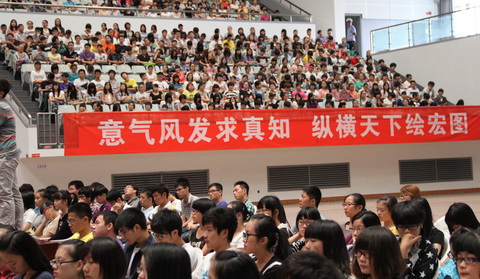 9月15日上午,学院2012级新生开学典礼在河西体育馆隆重举行,正校级巡视员宋培基,叶国灿、章融等学院领导班子全体成员、各系主任、学生工作书记、辅导员、新生班主任、各职能部门负责人以及全体2012级新生出席开学典礼,魏春初副书记主持典礼。