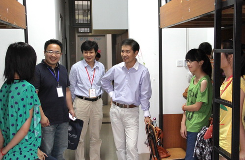 9月13日下午和晚上,叶国灿、章融等院领导在各系学生工作书记、学工办负责人、新生班主任和辅导员的陪同下,分别走访学生寝室亲切看望刚刚入学报到的2012级新生。
