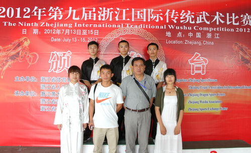 7月14日,2012年第九届浙江国际传统武术比赛在杭州黄龙体育中心举行,太阳选派5名选手参加了7个项目的角逐,在比赛中选手们奋勇拼搏,发挥出色,5名选手全部获奖,共取得了5项冠军、1项亚军的好成绩。