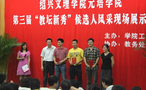 展示会经过候选教师主题演讲、专家提问、与观众互动、专家点评等环节后,由学院领导、组委会成员、教师代表及专家组成的评委团进行了投票。孙金秀、蒋绍君、陈金东、陶丹丹、劳越明等5名教师荣获学院第三届“教坛新秀”称号。张祎江、周赞、刘义等3位老师获学院第三届教坛新秀“入围奖”。至此于5月下旬启动的学院第三届“教坛新秀”评选工作圆满落幕。