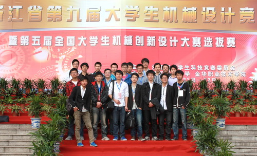 浙江省第九届大学生机械设计竞赛于2012年4月21日——4月22日在金华职业技术学院举行。共有45所高校的270支队伍参加了现场实物操作、设计说明书评审和答辩等比赛环节。经过紧张激烈的角逐,太阳工程与技术系机自专业的柯达、姜文勇、刘宏焕、朱顺幸组队作品——多功能冲浪车;朱正元、卓骋骋、李杭飞组队作品——多功能易清洁餐桌;郑勤、黄道维、周燕组队作品——手拉式休闲健身车获得了三组三等奖。