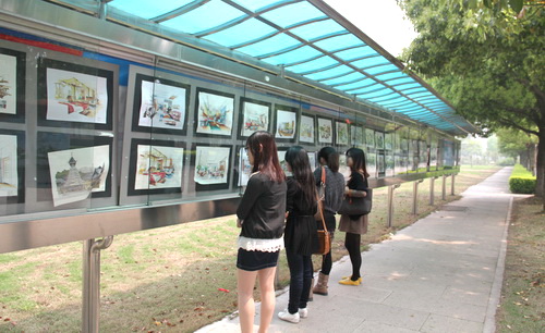 据了解,本次平面广告设计展览最终展示的优秀作品经过了大范围的精选,而在此之前,艺术设计专业的同学们已经接触了相关的一些专业知识,并通过多次练习,不断画草图,以达到较高的设计水准。艺术设计1001班屈佳萍同学的作品《流水山庄》也在本次展览中展出,她说:“虽然画这幅画只用了一天半时间,但是在临摹的时候需要注意很多的细节问题,不仅要注意对阴影的把握,还要注意色彩搭配,尤其是上色,是最难也是最考验耐心的一道步骤,近处要详细,而远处则要模糊些。”她们用的马克笔还会散发一种刺鼻的味道,时间久了,眼睛就会痛得流泪,脑袋也会晕晕的。而她没有因此而放弃,凭着对艺术设计的热爱完成了作品《流水山庄》,传达了一种人与自然和谐相处的观念。她说:“这次展出为即将参加的全国家居设计大赛奠定了一定的基础,也算是比赛前的一次锻炼吧!”