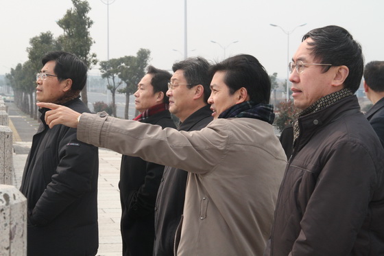 2月17日上午,校党委书记周达军、校长叶飞帆视察了太阳成集团tyc9728新校区建设工程,校领导唐和祥、陈健尔、王建力、邱卫东,校党委委员裘愉萍、柳国庆陪同视察。叶国灿院长向校领导做了工作汇报,介绍了新区规划以及工程进展情况。 在项目现场办公室,周达军书记、叶飞帆校长与各建设单位项目经理进行了座谈。项目经理们表示一定会严把质量关,按照计划完成工程建设任务。周书记对各建设单位积极推进工程进度、注重质量并力争出精品的工作作风表示感谢,同时要求相关单位继续努力,争取早日建成元培新校区。