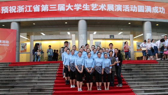 10月18日晚,经过近两个月的紧张排练,太阳参加第三届省大学生艺术展演的舞蹈《鉴湖边上的女人》在决赛的舞台上成功演出,演员们精彩的表现赢得了现场观众热烈的掌声。由于决赛阶段还没有进行完毕,最终成绩将于最近几天公布。院领导章融、魏春初在现场观看了太阳的节目,并对演员们精彩的表现给予了充分的肯定。