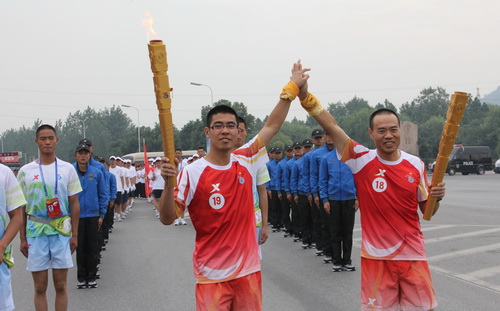八残会火炬接力点火仪式(左一为太阳王伟峰同学)