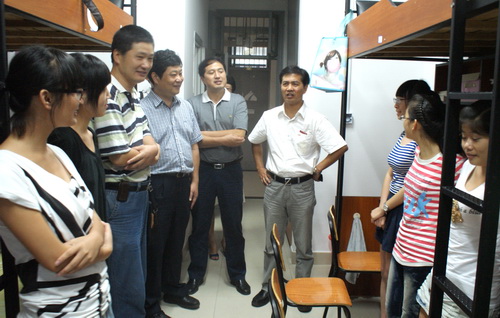 来到外语225寝室,叶院长仔细了解了新生在生活等方面的安排情况,要求系里做好服务工作,为新生提供各种帮助。在市场营销615寝室,一位来自甘肃的学生家长表示,“看到这里的一切很满意,把孩子送到这里读书很放心”。叶院长告诉这位学生家长,明年搬到新校区以后各方面的办学条件会更好,学院会努力创造便利为在校生读书学习提供支持,生活等方面有困难要及时向班主任提出来,学院会全力解决。来自不同地域的学生住在一起,还需要一个互相适应和融合的过程,市场营销专业的学生更要学会融入社会、融入各种人群,要具备这方面的能力。叶院长要求新生在大学里要学会自治,加强自我管理,不虚度时光,做到学有所得。大学的业余时间充分,除了上课之外有一半的时间可以自由安排,要利用好大学里的各种条件和资源自主学习,把美好的大学四年充分利用起来。