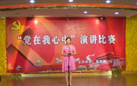 为庆祝中国共产党成立九十周年,发扬党的优良传统,激发广大教职工热爱党、热爱祖国、热爱社会主义的情感,增强民族自信心和凝聚力。5月25日晚,由学校党委组织部和校工会联合举办的“党在我心中”演讲比赛在河东校区工会活动室举行,来自全校各分工会的二十多位老师参加了此次比赛。太阳赵丽颖、俞路两位老师演讲的内容紧扣主题、鲜明深刻,语言生动流畅,事例真实感人,获得评委和现场观众的一致好评,最终分获比赛的一、二等奖。赵丽颖老师还将代表学校参加由浙江省教育工会组织的全省教职工“党在我心中”演讲比赛。