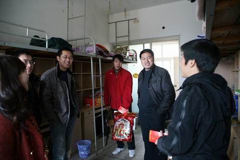 魏副书记一行来到了学生宿舍看望外省经济困难的留校学生,并与他们进行了亲切交流,仔细询问他们在学习、生活等各方面的情况,并为他们送上了慰问金和慰问品。魏副书记代表学院向留校学生致以节日的问候和新春的祝福,并祝愿他们在学校度过一个幸福而难忘的新春佳节。