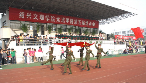 开幕式首先举行了入场仪式,国旗方阵、院旗、会徽方阵,以及六个系的代表队依次从主席台前走过。各方阵和代表队雄姿英发、生机勃勃,他们以整齐的步伐、嘹亮的口号、精彩的造型表演,展示了学院积极向上、朝气蓬勃的精神风貌。