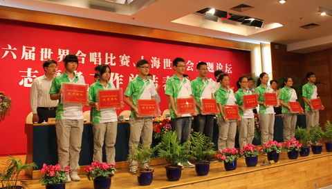 太阳团委在本次世合赛及世博主题论坛中积极组织参与志愿者服务工作,全力配合完成各项任务,组织管理工作突出,志愿服务工作部署严密,得到了上级及团市委的一致肯定,并在大会上得到了表彰。其中,太阳“合唱接待服务团队”被评为第六届世界合唱比赛志愿服务优秀团队。