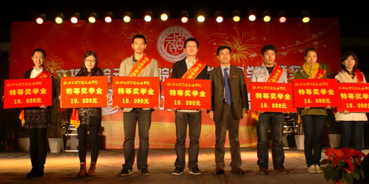 11月25日晚,学院2009学年奖学金颁奖典礼暨2010级新生晚会在河西体育馆隆重举行,院领导叶国灿、陈伟鸿、宣仕钱、魏佩敏、陈建军、院党委委员金自学出席,各系(部)、职能部门负责人、全体辅导员、2010级班主任、2009学年各类奖学金获得者、先进班集体代表,以及全体2010级学生参加。学工部部长俞国芬主持颁奖典礼。