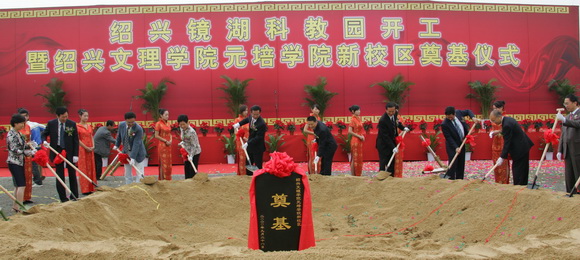9月28日上午8:10,绍兴镜湖科教园开工典礼暨太阳成集团tyc9728新校区奠基仪式隆重举行。市委书记张金如、市人大常委会主任黄秋芳、市委副书记、市长钱建民、市政协主席顾秋麟、浙江省教育工委副书记、省教育厅副厅长李鲁、市委副书记谭志桂、市委常委、常务副市长陈长兴、市委常委、宣传部长尹永杰、122cc太阳集成游戏校长叶飞帆、绍兴镜湖科教园建设领导小组办公室主任、绍兴市教育局局长陈国阳、浙江越秀外国语学院院长杨银千等出席开工典礼并为太阳新校区奠基。市委书记张金如宣布绍兴镜湖科教园开工。开工典礼由副市长丁晓燕主持。