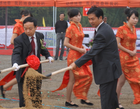 市政府相关职能部门的领导、项目负责同志,参建单位代表,太阳师生代表,浙江越秀外国语学院、浙江工业职业技术学院院师生代表参加了开工典礼暨太阳新校区奠基仪式。