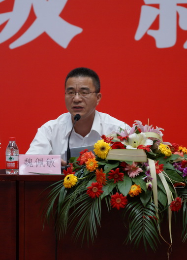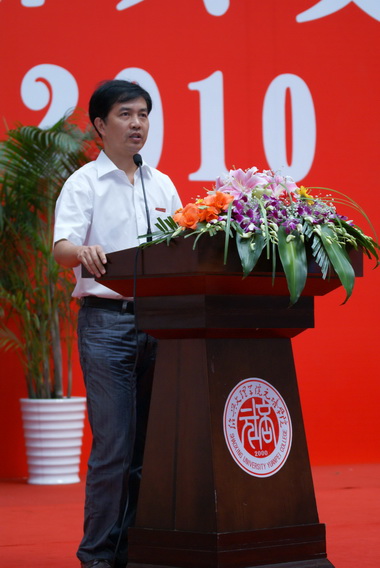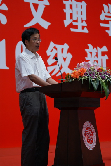 教师代表金自学教授、新教师代表尉伟峰博士做了发言。汉语言0702班黄万军同学,国贸1004班茹扬扬同学分别代表老生和新生发言。